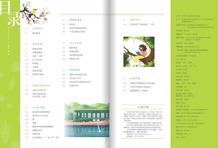 《小讀者》的主要欄目:讀經(jīng)典美文、學(xué)作文課堂、寫作文素材、趣小讀者俱樂(lè)部等。